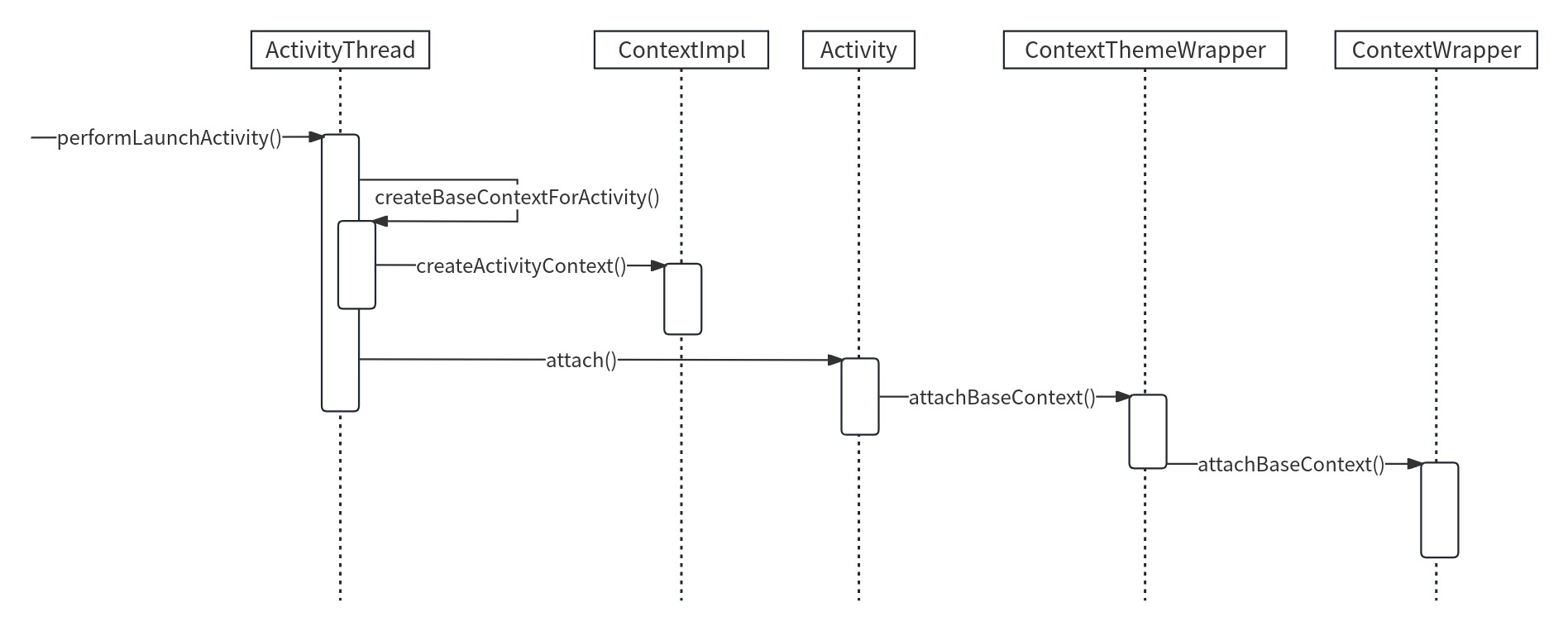 注释1处通过createBaseContextForActivity()方法来创建Activity的ContextImpl,并将ContextImpl传入注释4处的activity的attach()方法中。